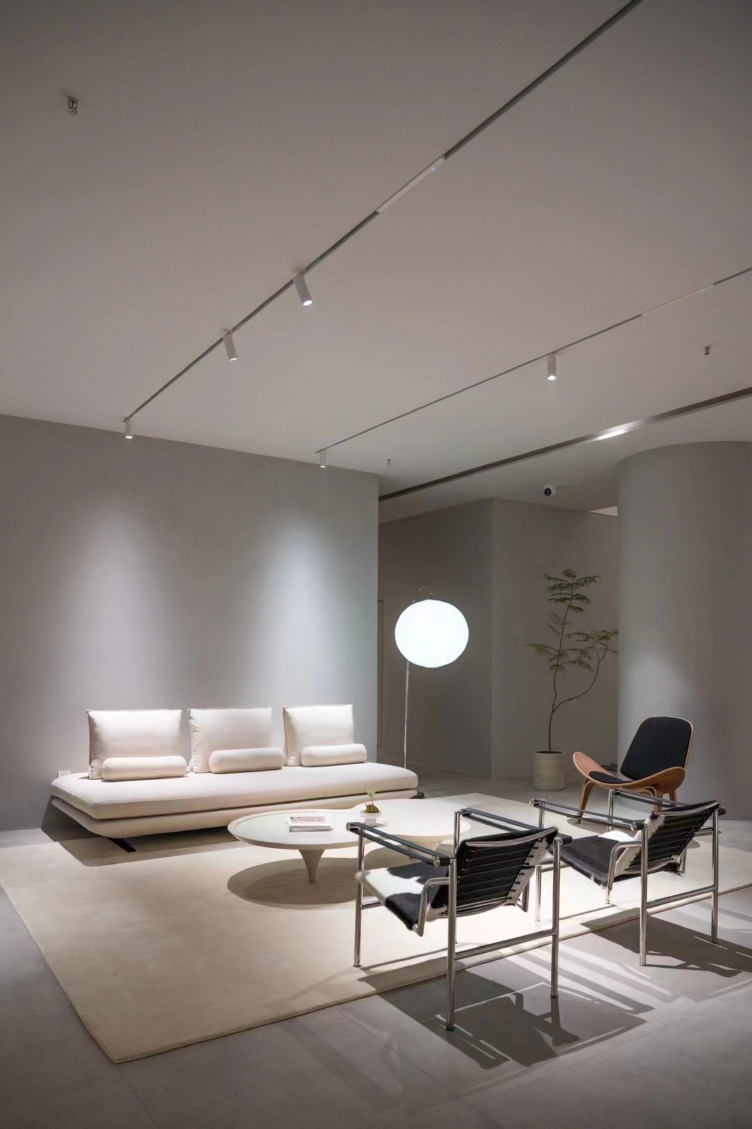 色彩的静谧与自然融合,将整体的空间自然力传递给客户,通过灯光、材质等展示产品,让客户去感受,去呼吸,身临其境才能更清楚、更明朗的接触产品,为顾客留下一个好的印象。